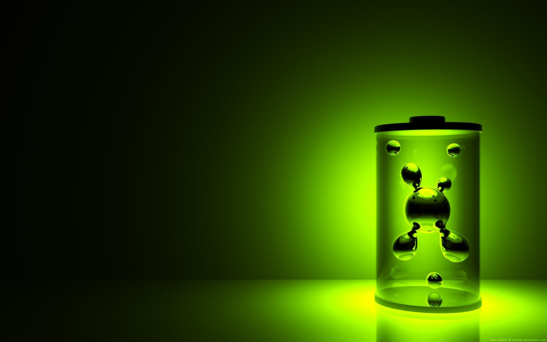 Wallpaper Flask with molecules on a green background 3d graphics