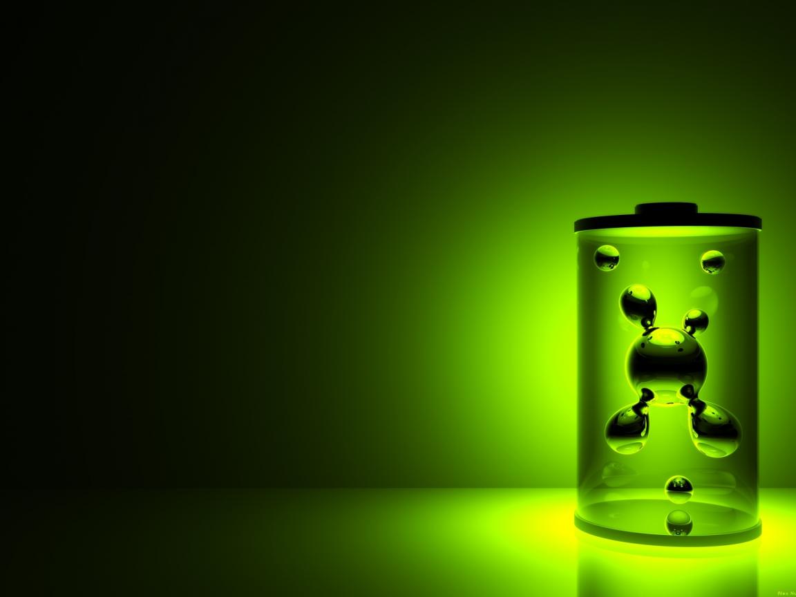 Wallpaper Flask with molecules on a green background 3d graphics