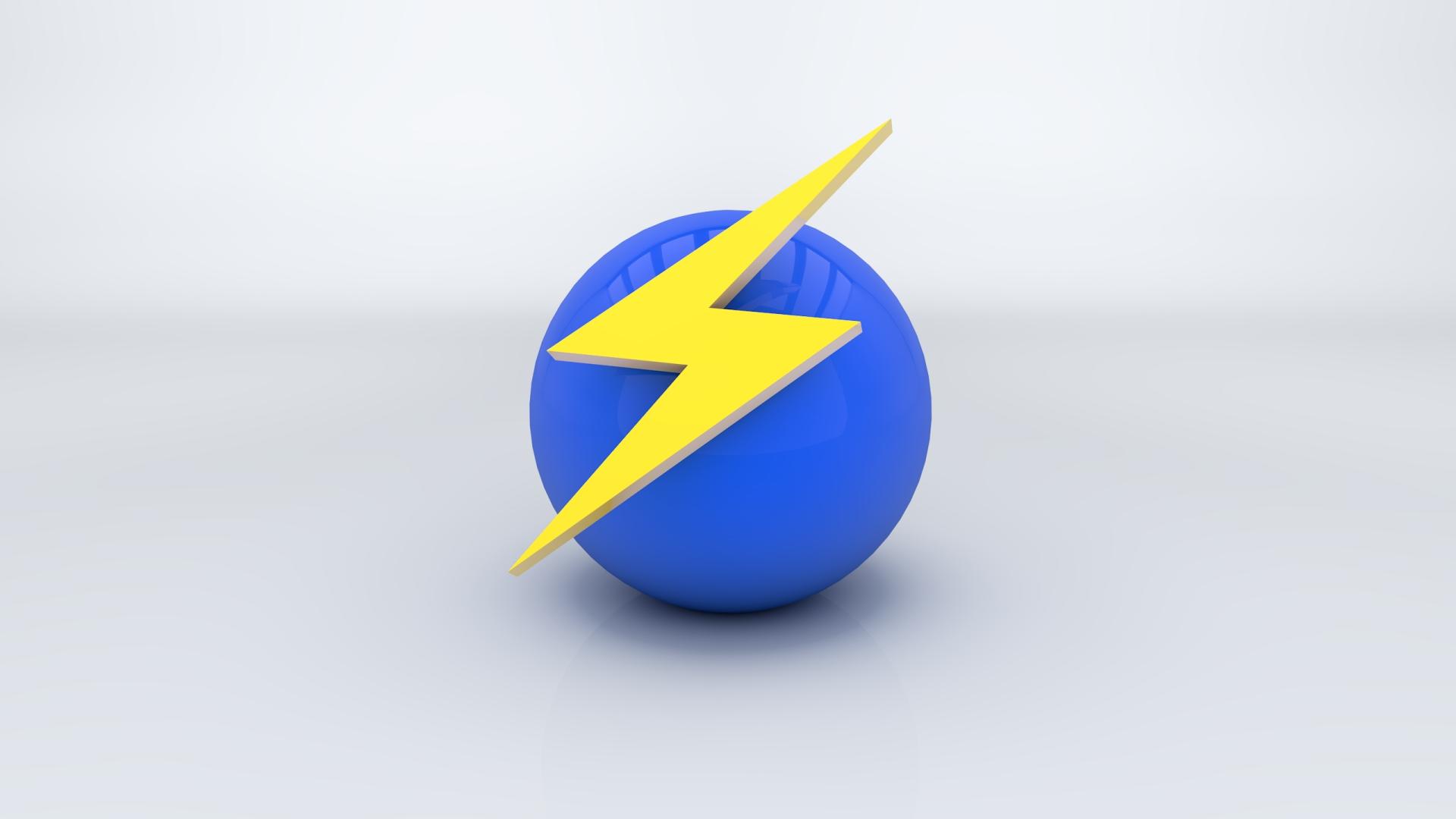 Wallpaper Blue ball with yellow lightning 3D graphics