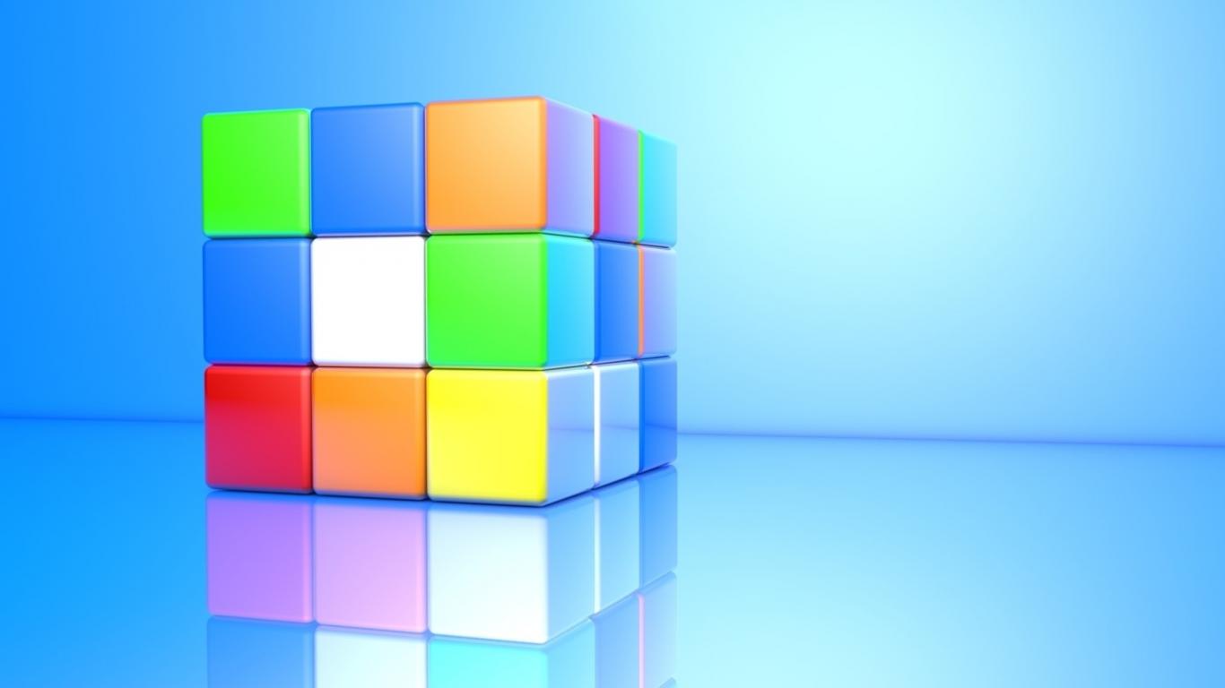 Wallpaper Multicolored Rubik`s cube on a blue background 3D graphics