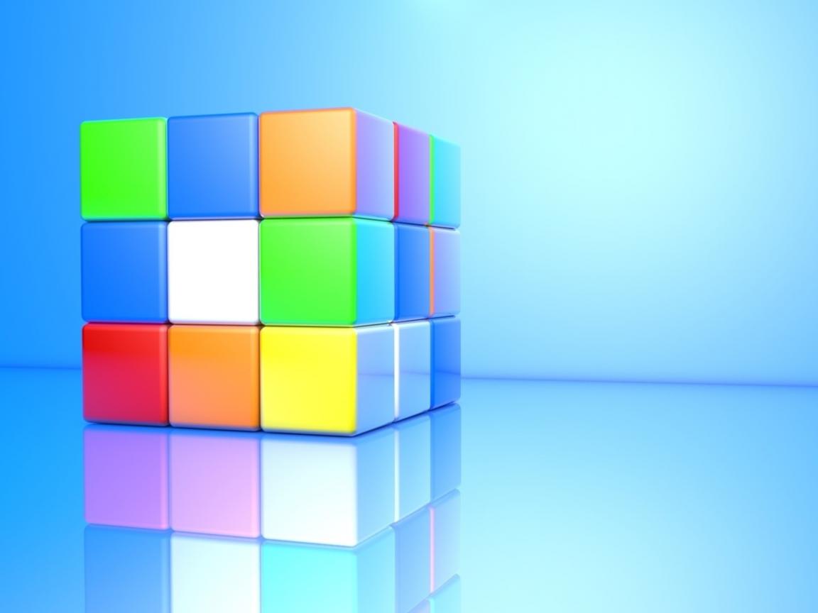 Wallpaper Multicolored Rubik`s cube on a blue background 3D graphics