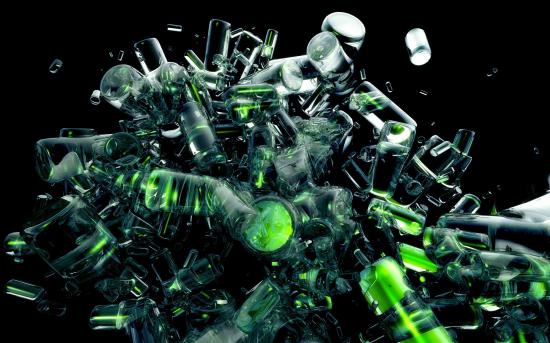 Wallpaper Broken bottles on a black background 3d graphics