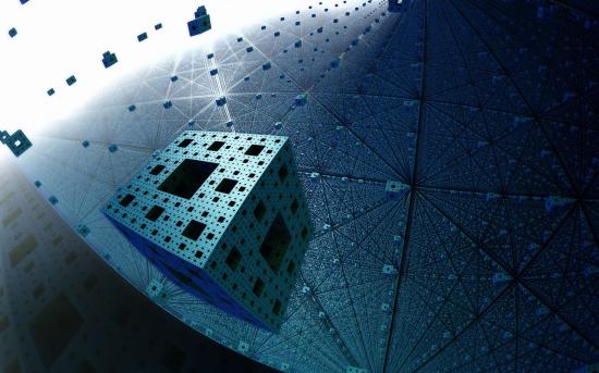 Wallpaper Flying blue cubes on the digital web, 3d graphics