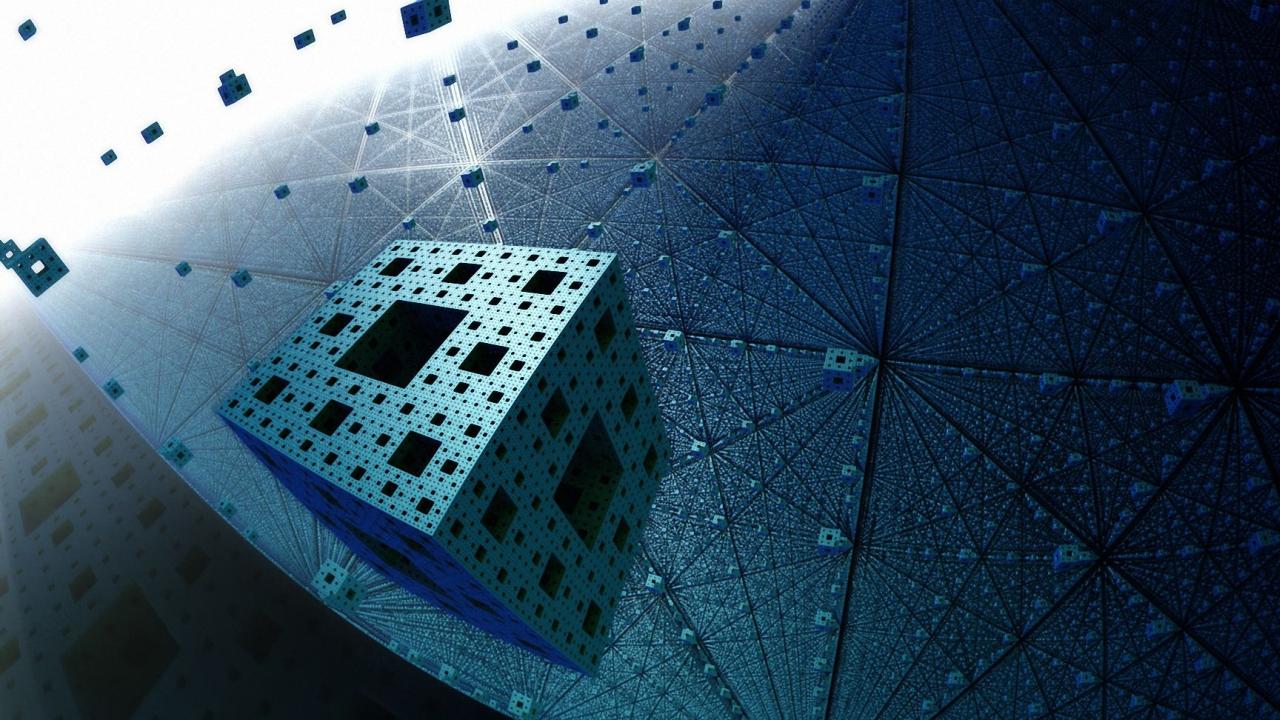 Wallpaper Flying blue cubes on the digital web, 3d graphics