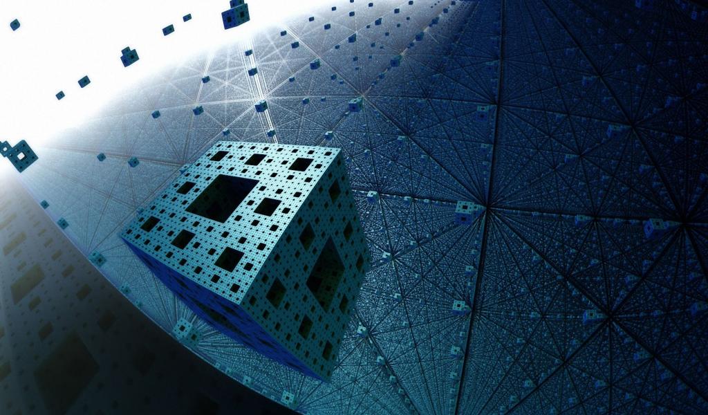 Wallpaper Flying blue cubes on the digital web, 3d graphics