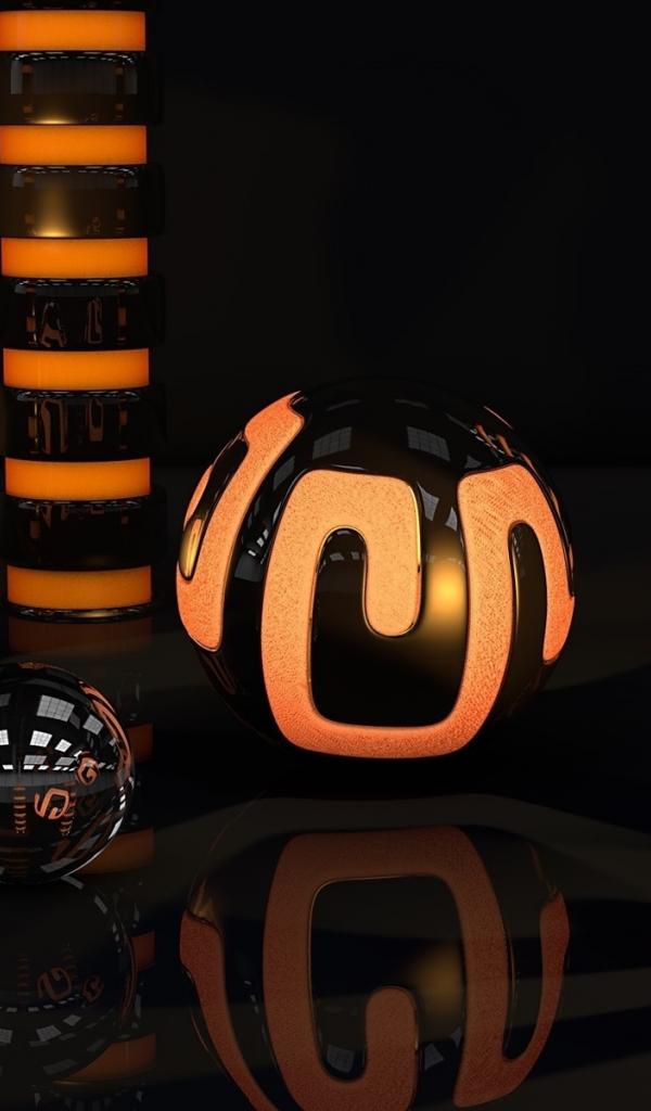 Wallpaper Orange-black 3d balls are reflected in the surface