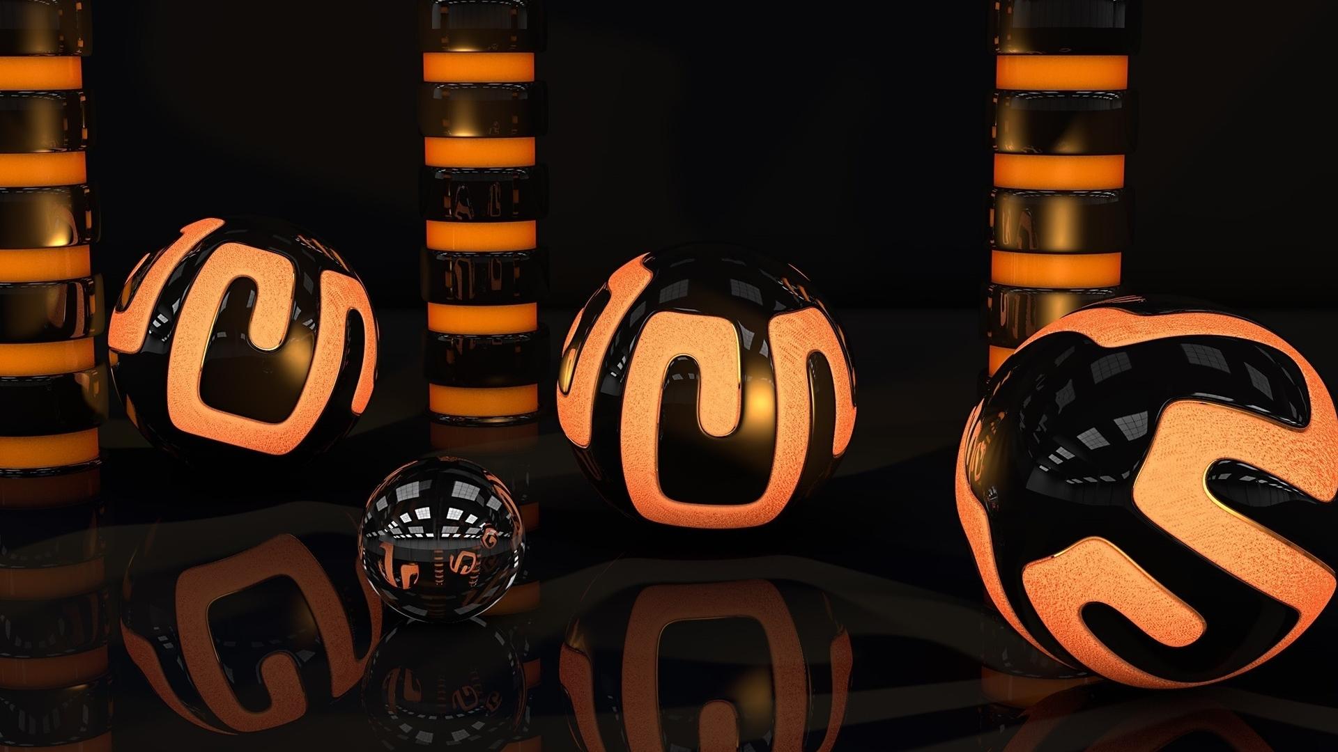Wallpaper Orange-black 3d balls are reflected in the surface