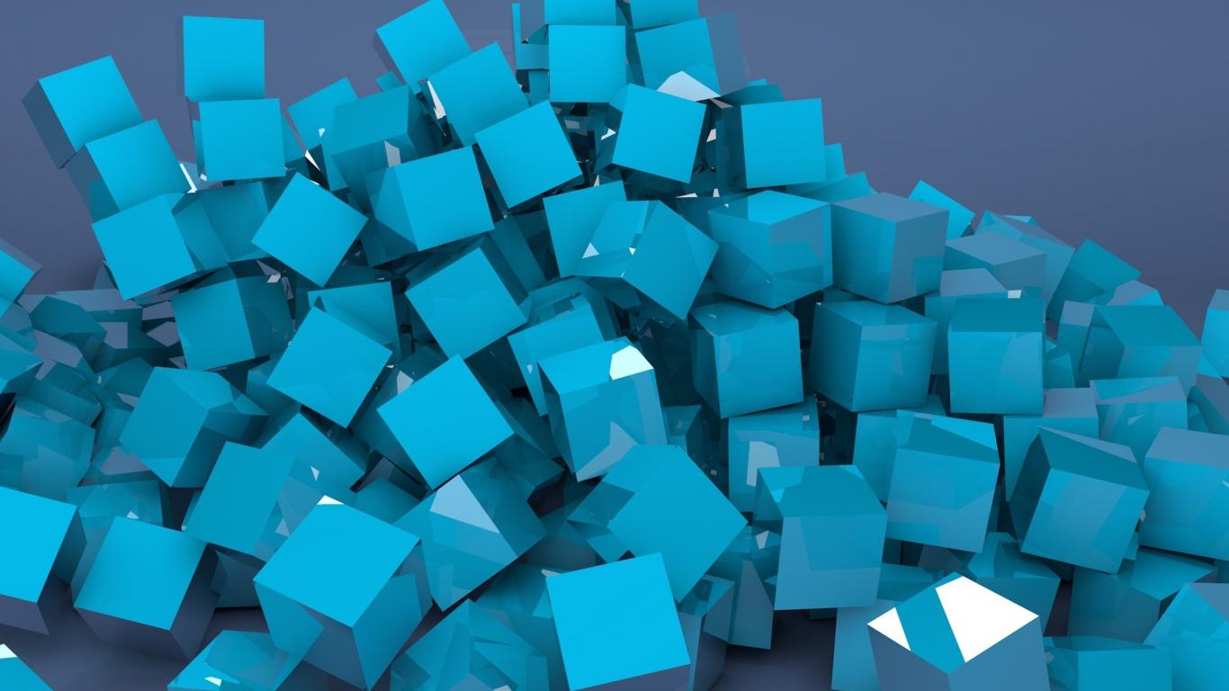 Wallpaper Many blue 3d squares on a gray background