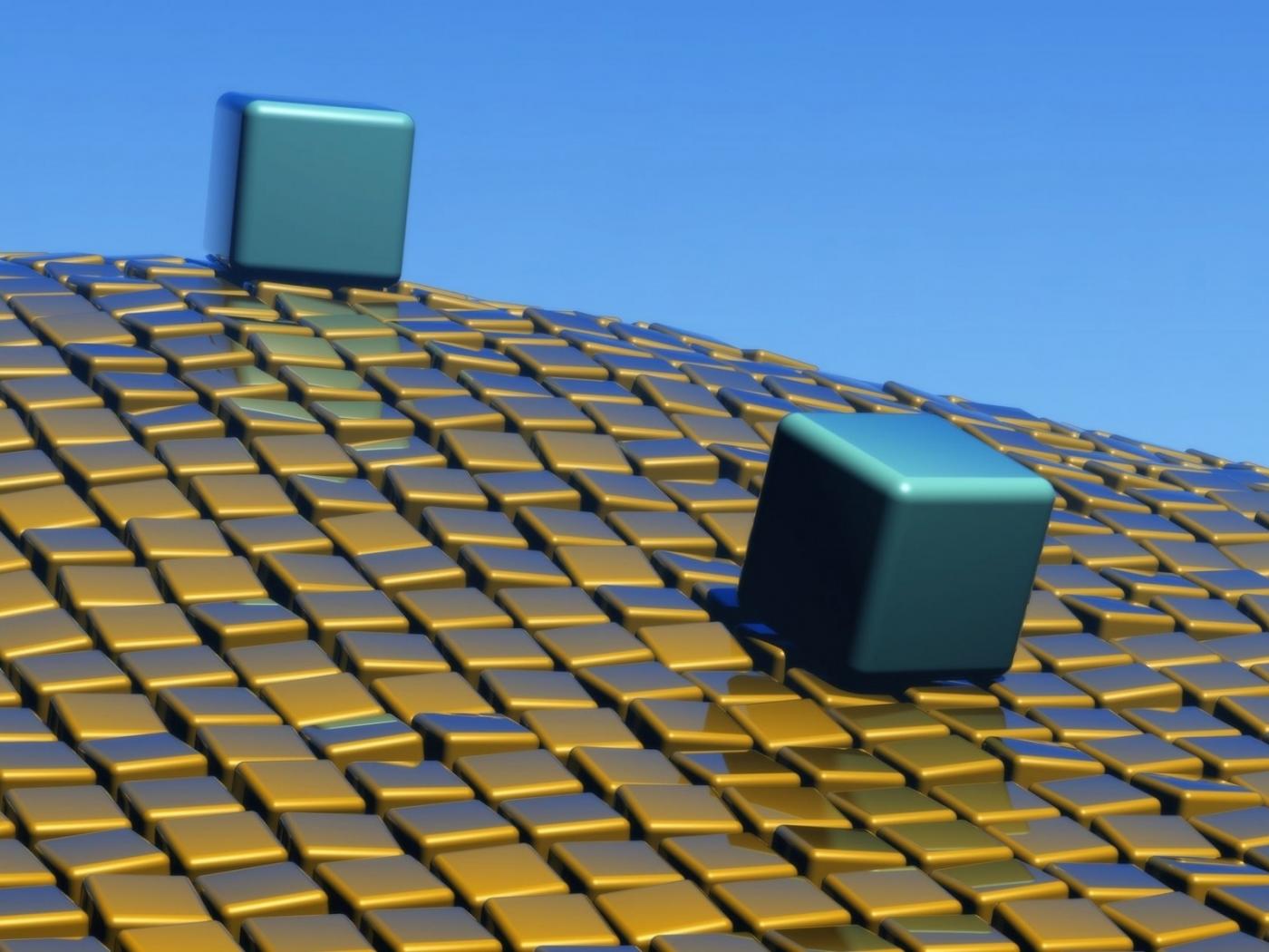 Wallpaper Two 3d cubes on an uneven geometric surface