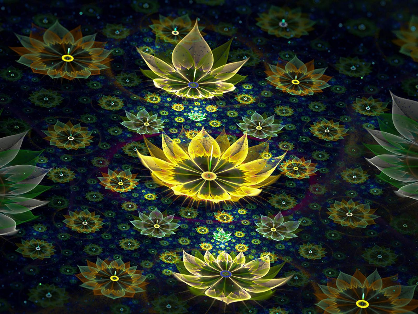 Wallpaper Beautiful 3d flowers on a black background