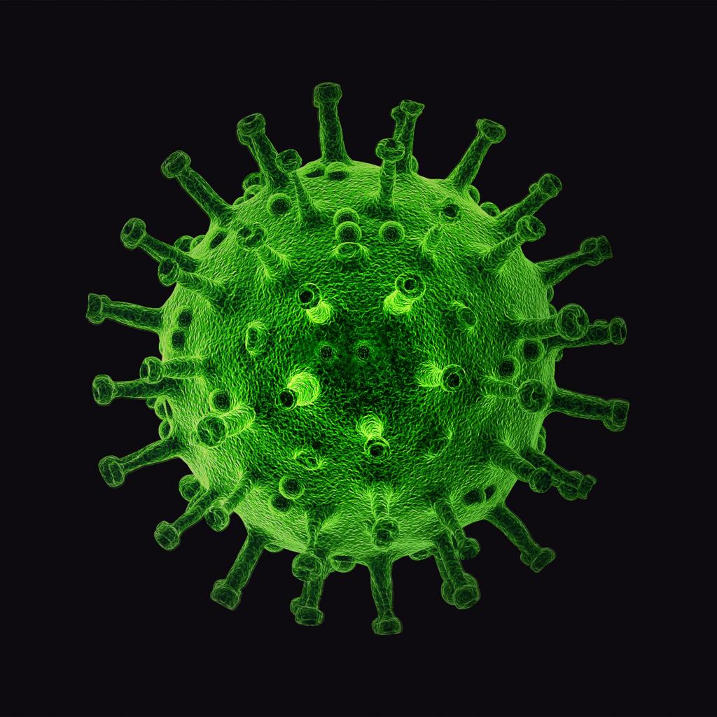 Wallpaper Big green virus on black background 3d graphics