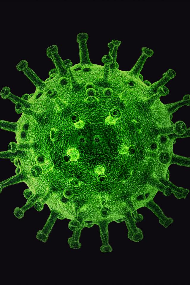 Wallpaper Big green virus on black background 3d graphics