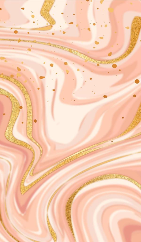 Wallpaper Blurry waves of pink, white and gold paint