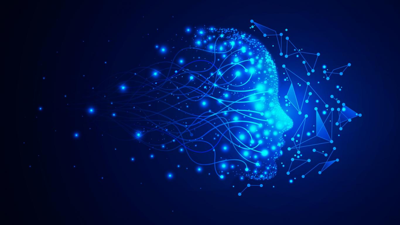 Wallpaper Neon face with dots on blue background