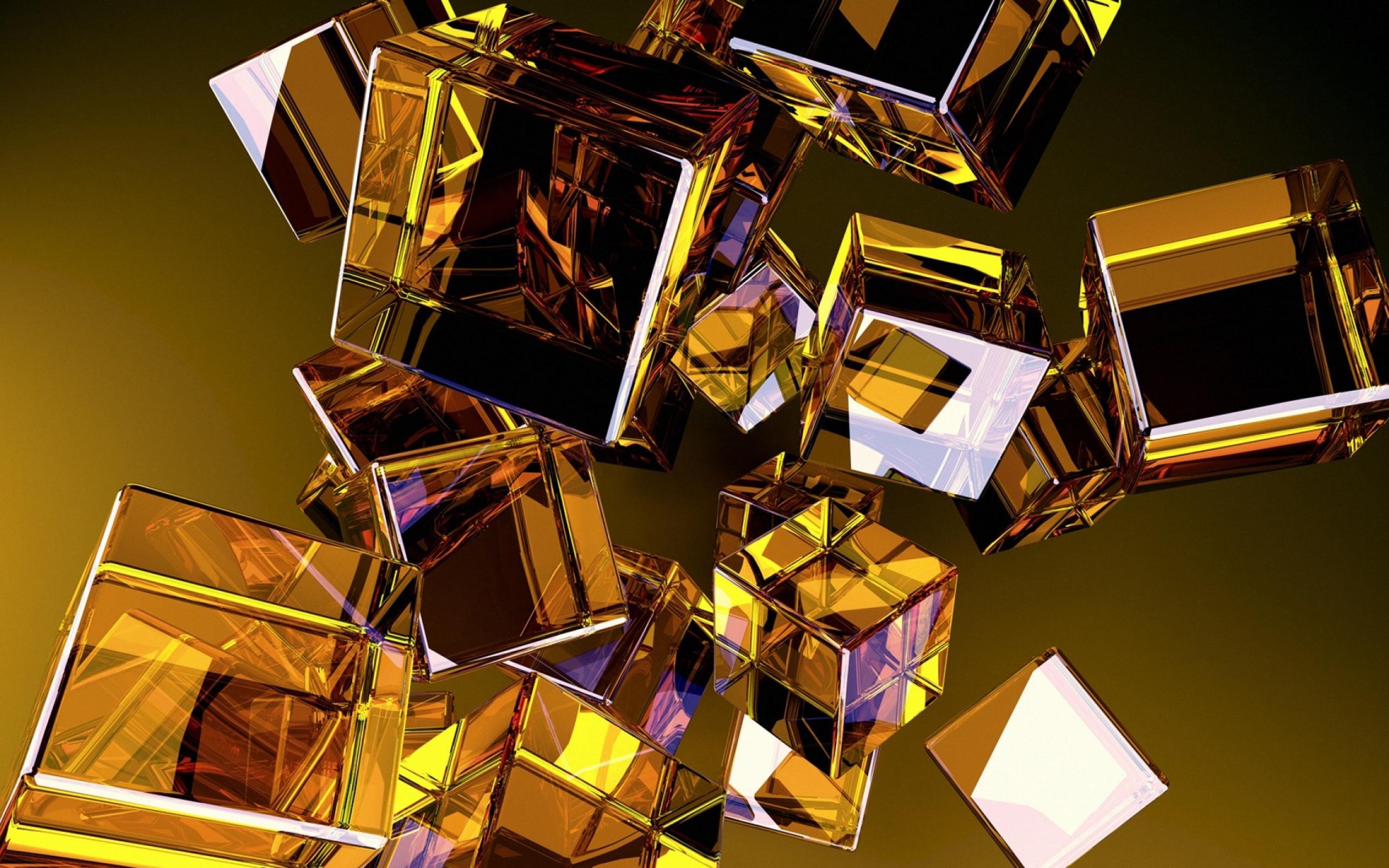 Wallpaper Golden cubes in the air 3d graphics