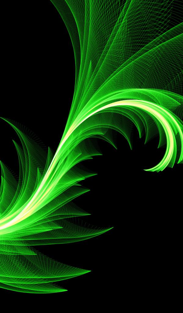 Wallpaper Green wavy abstract pattern on black background