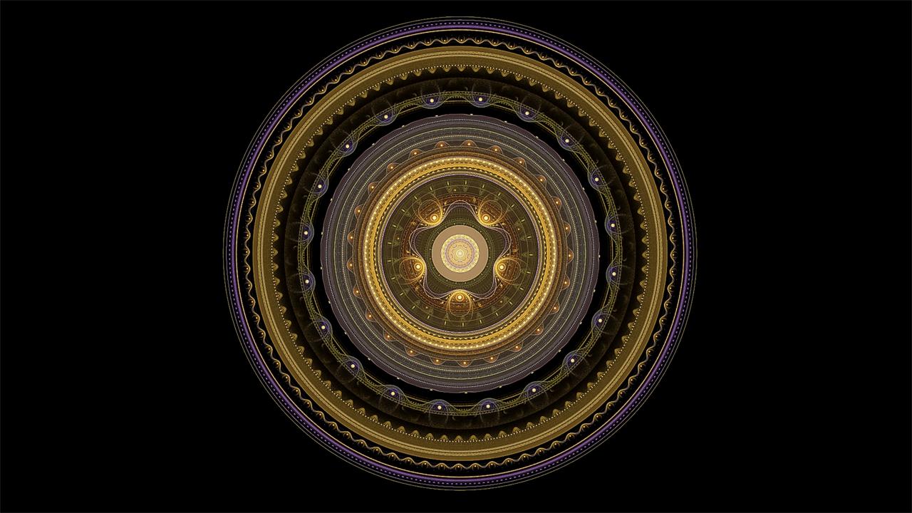 Wallpaper Golden drawing mandala on a black background