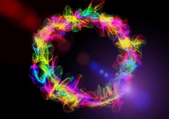 Wallpaper Circle of multicolored light waves on a black background