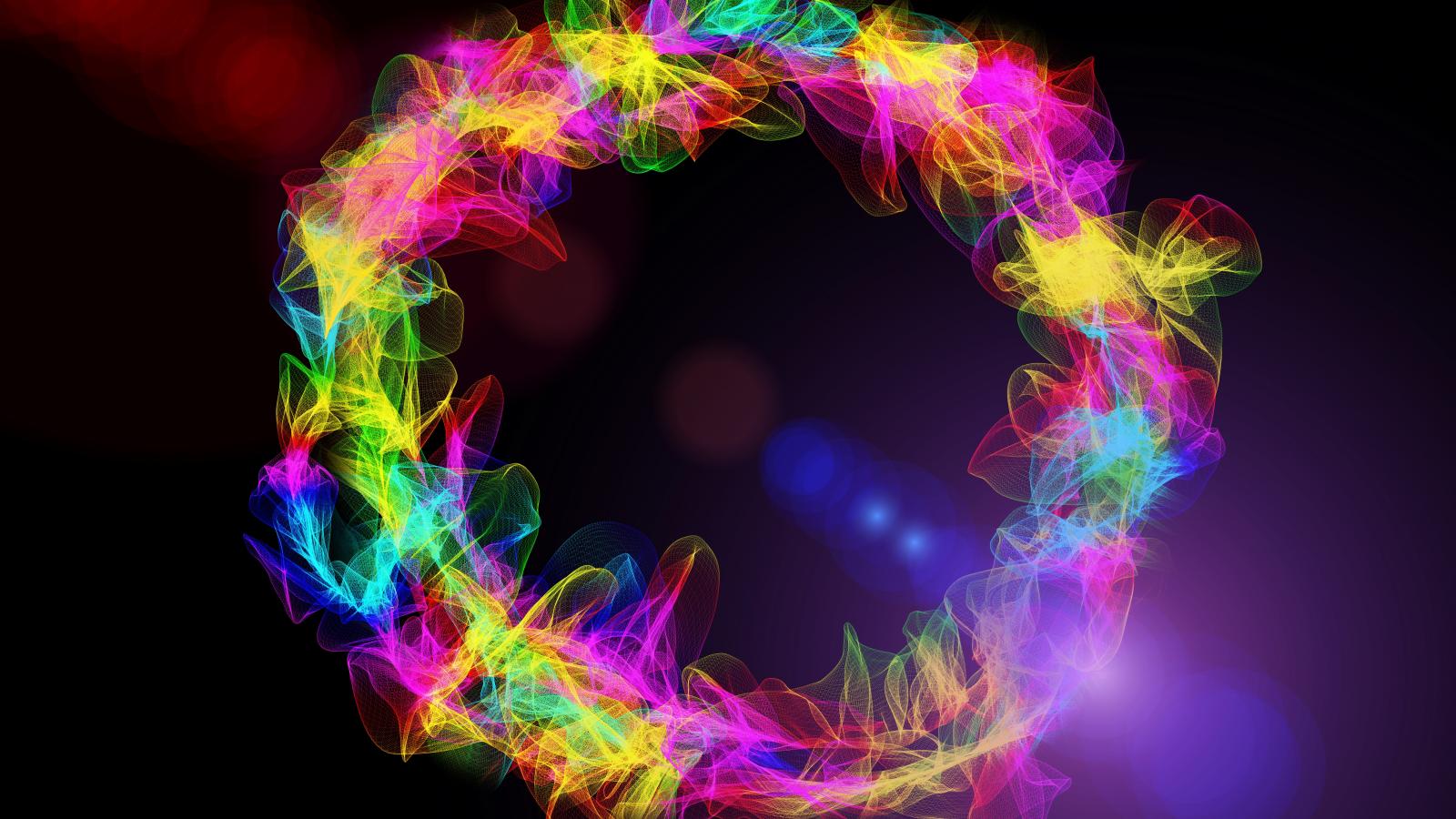Wallpaper Circle of multicolored light waves on a black background