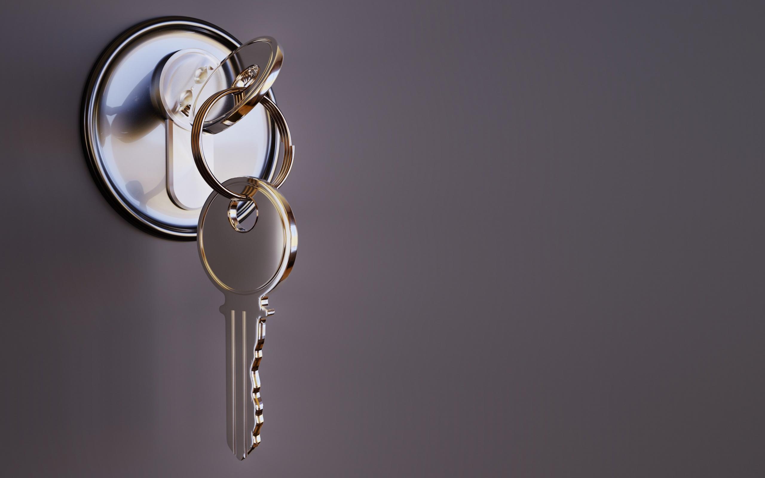 Wallpaper Key in the lock on a gray background 3d graphics