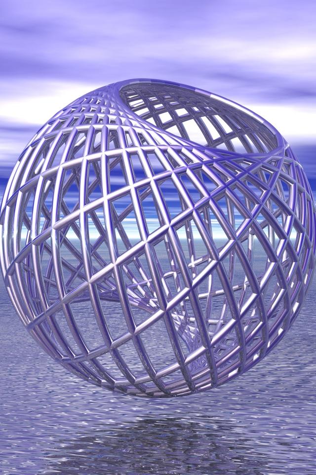 Wallpaper Metal round cage over water 3d graphics