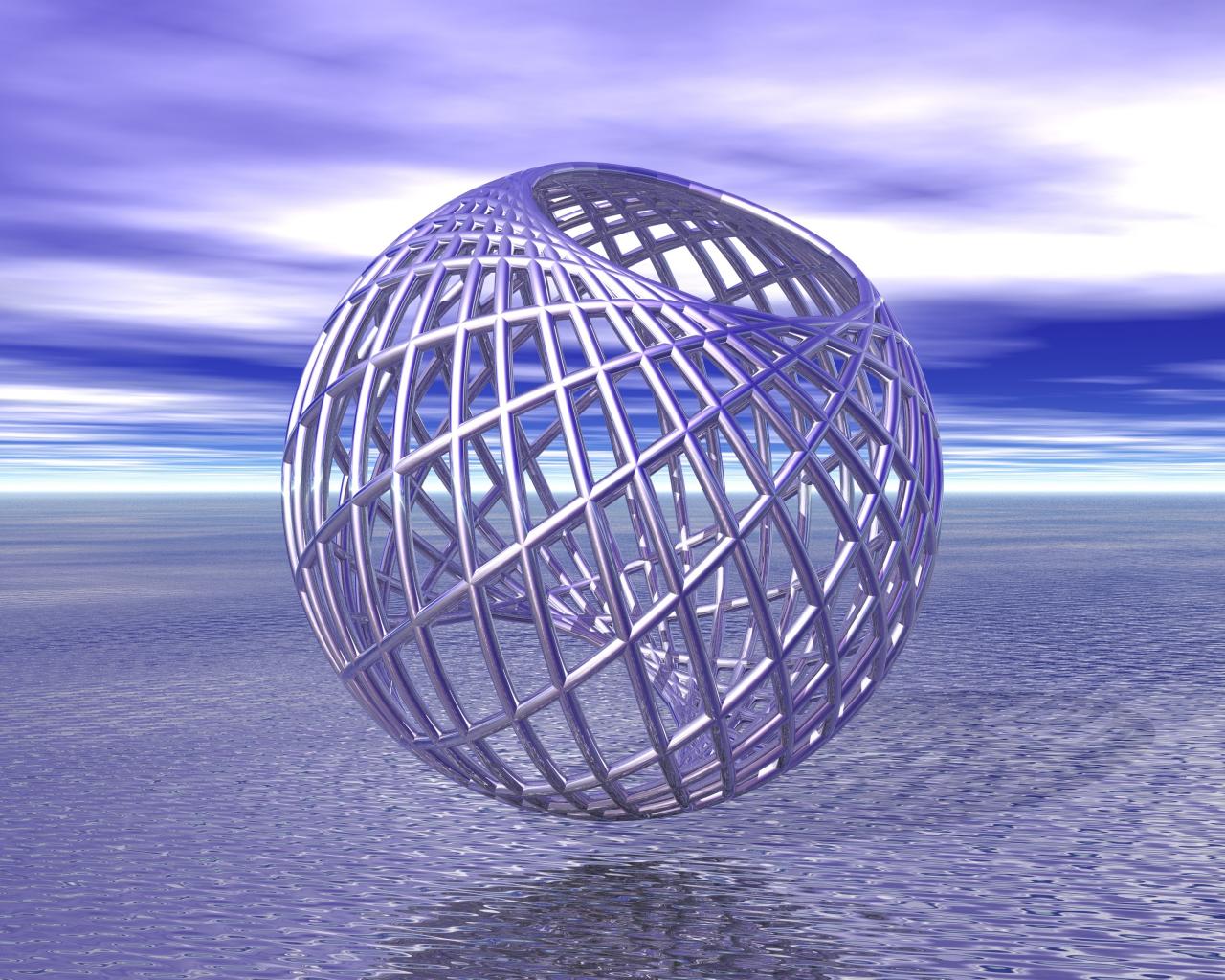 Wallpaper Metal round cage over water 3d graphics