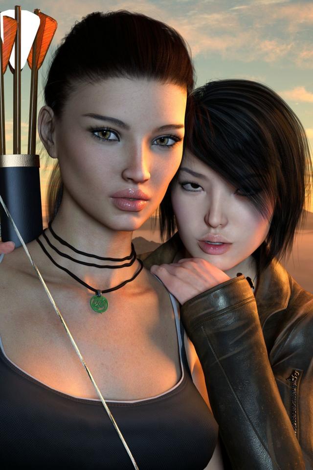 Wallpaper Two 3d girls with a bow and arrow