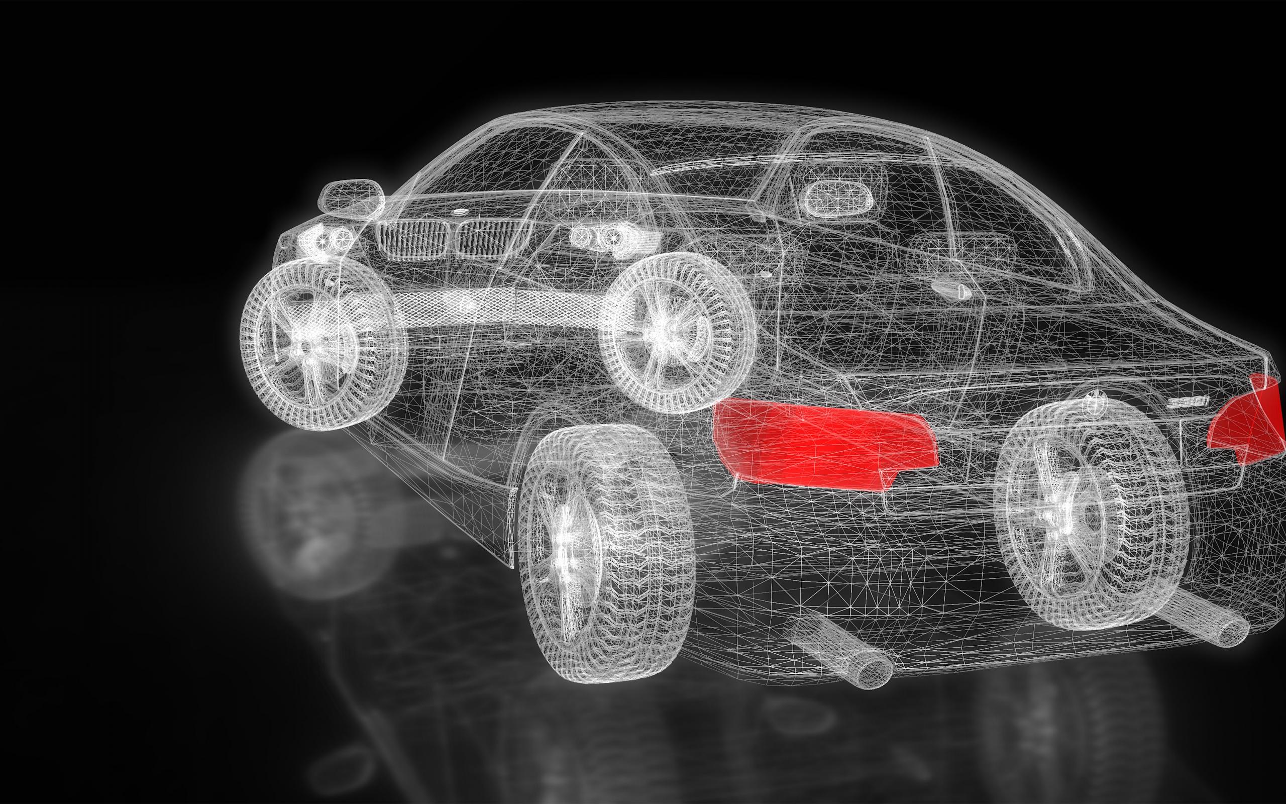 Wallpaper Three-dimensional model of a car on a black background