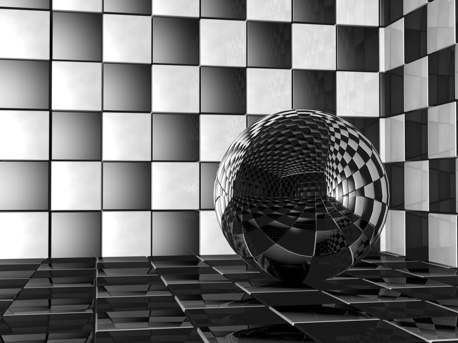 Wallpaper Glass ball in a room with black and white walls 3d graphics