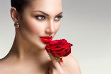 Wallpaper Girl with closed eyes with bright makeup with a glass of champagne in hand