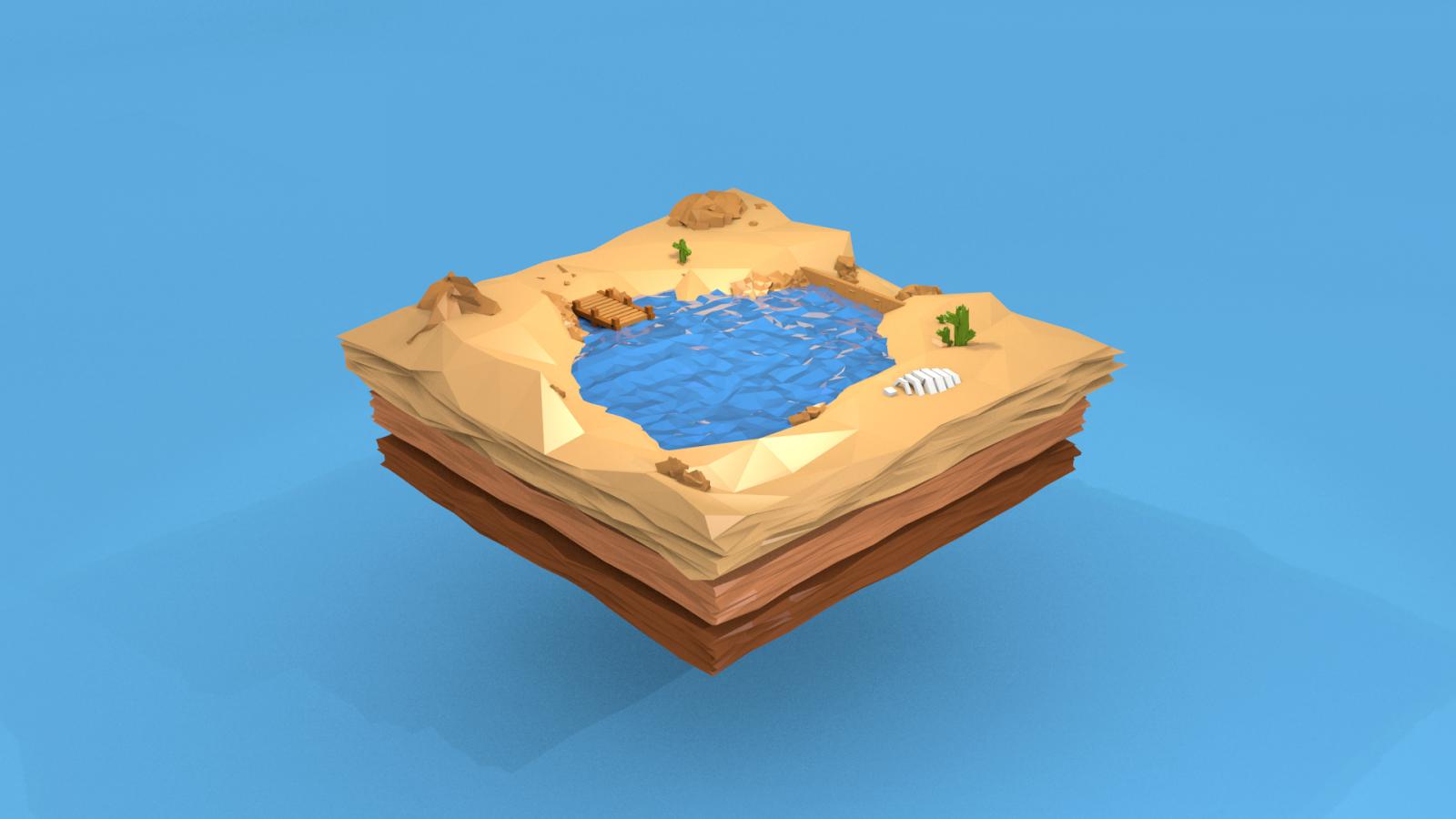 Wallpaper The lake is among the sand, 3D model