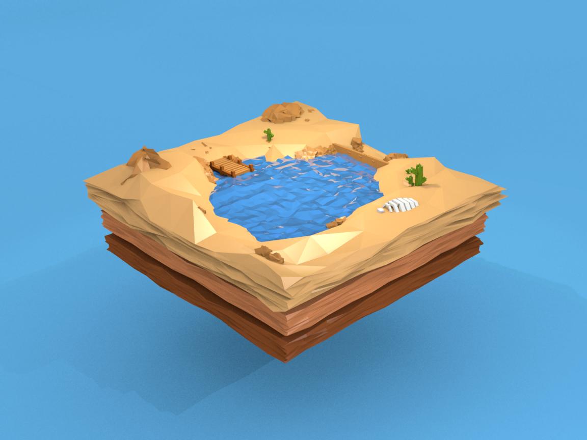 Wallpaper The lake is among the sand, 3D model