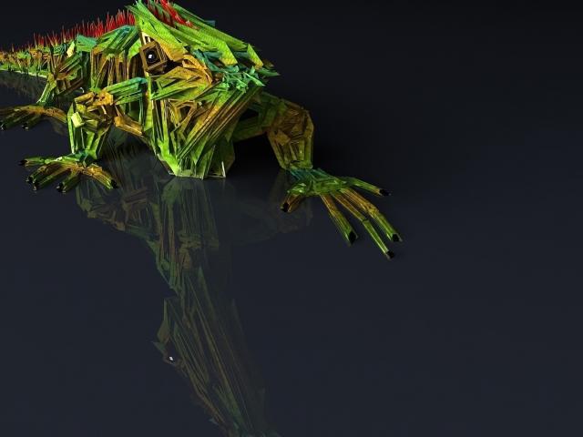 Wallpaper 3D chameleon on a gray surface