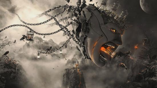 Wallpaper Flying head with chains, 3-D graphics