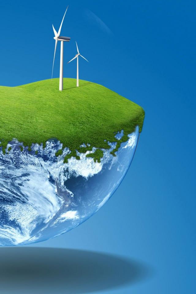 Wallpaper Lawn and windmills at half the planet, 3-D graphics