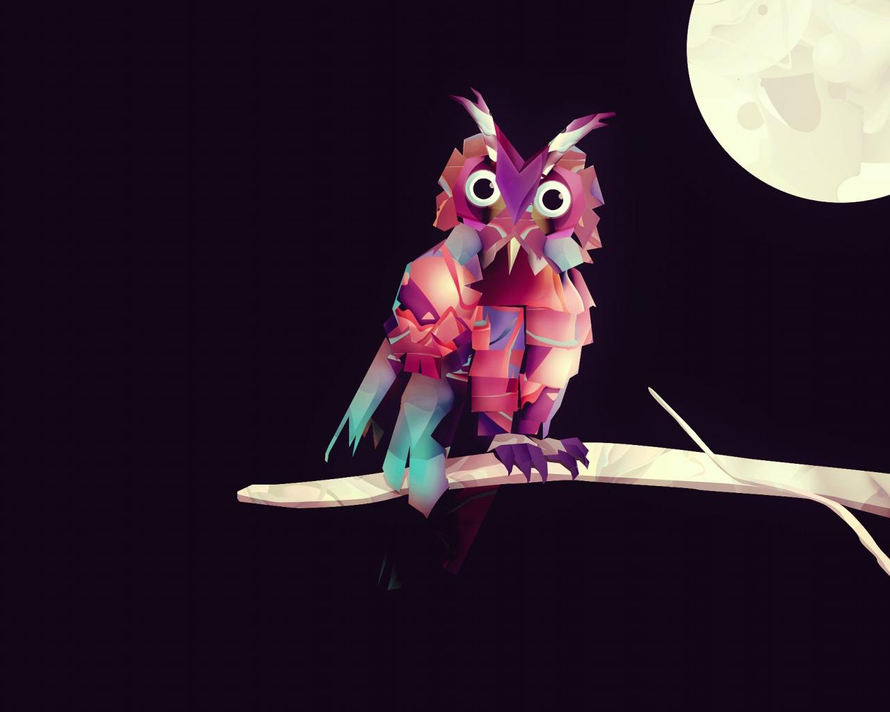 Wallpaper Owl on a branch, 3-D graphics