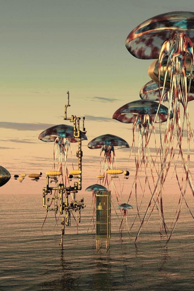 Wallpaper Flying jellyfish among airships