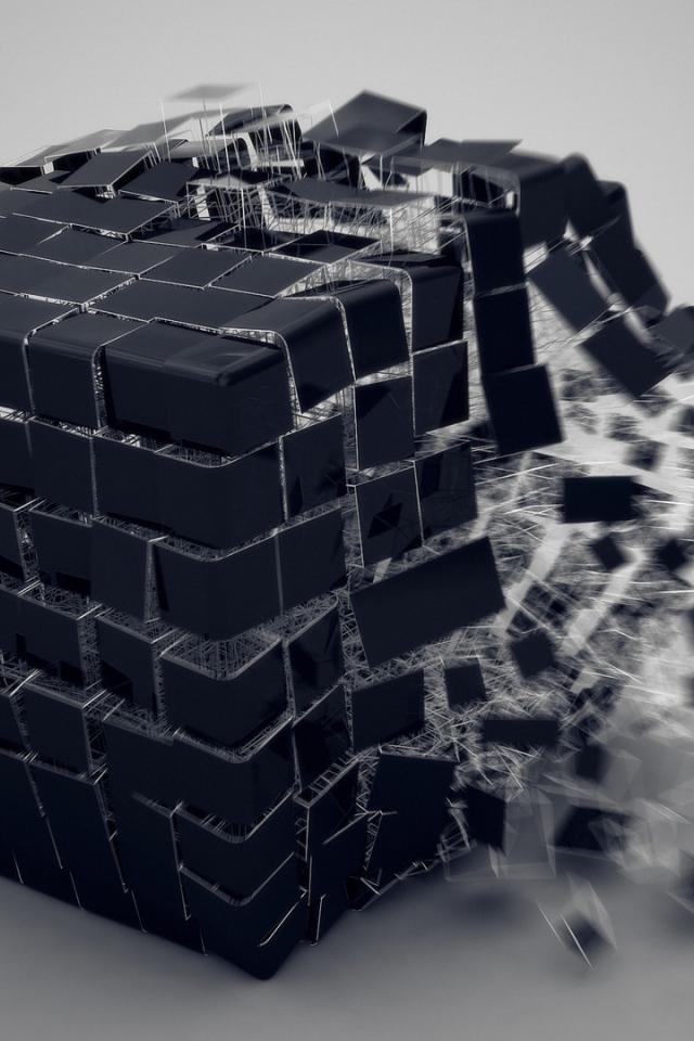 Wallpaper Black cube falling apart