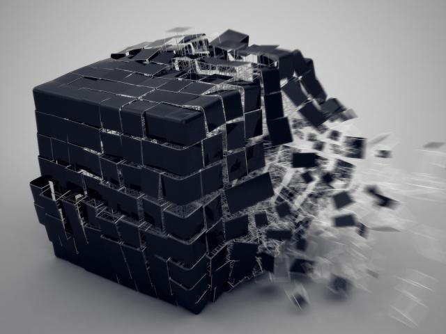 Wallpaper Black cube falling apart