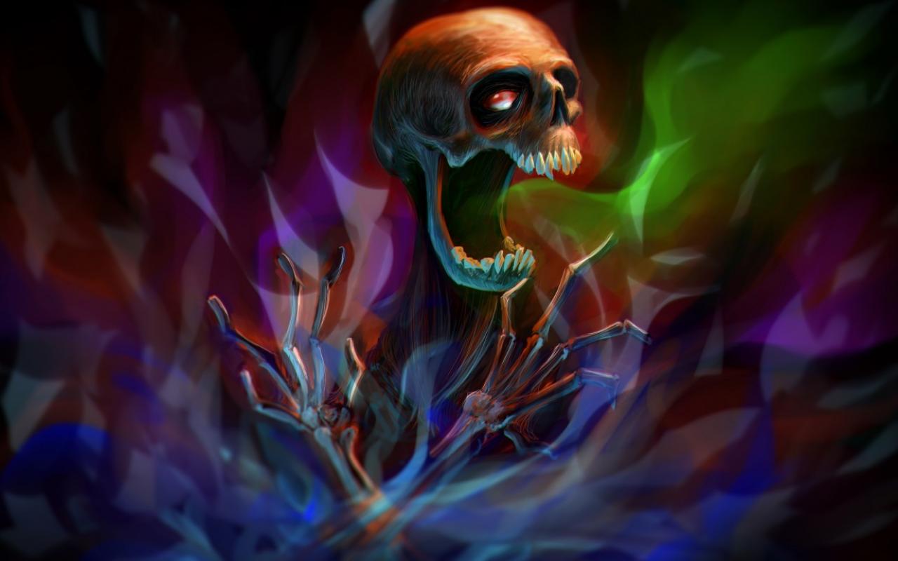 Wallpaper The skeleton of a dinosaur skeleton chasing man