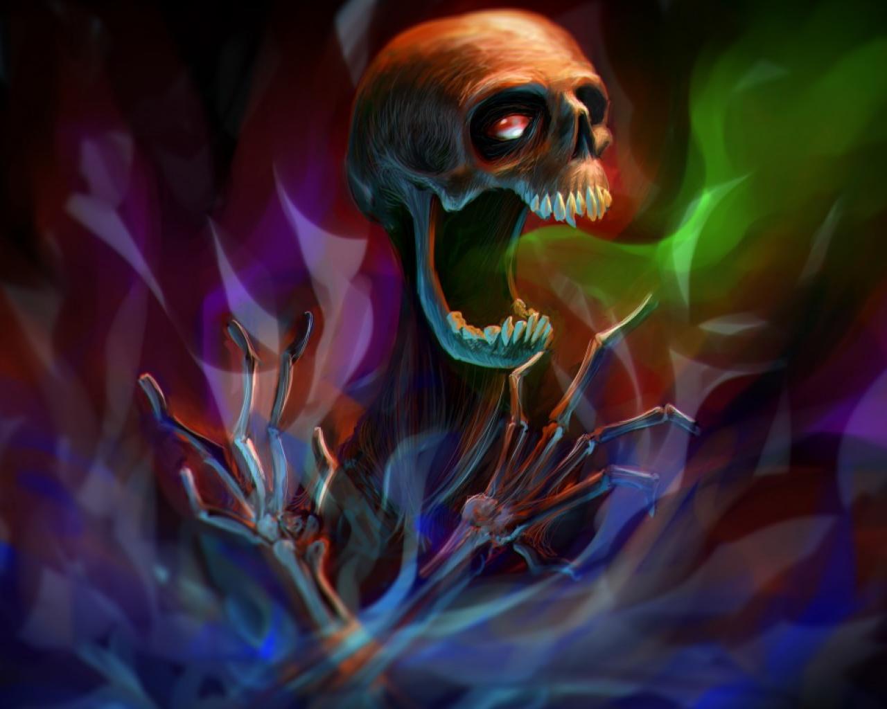 Wallpaper The skeleton of a dinosaur skeleton chasing man