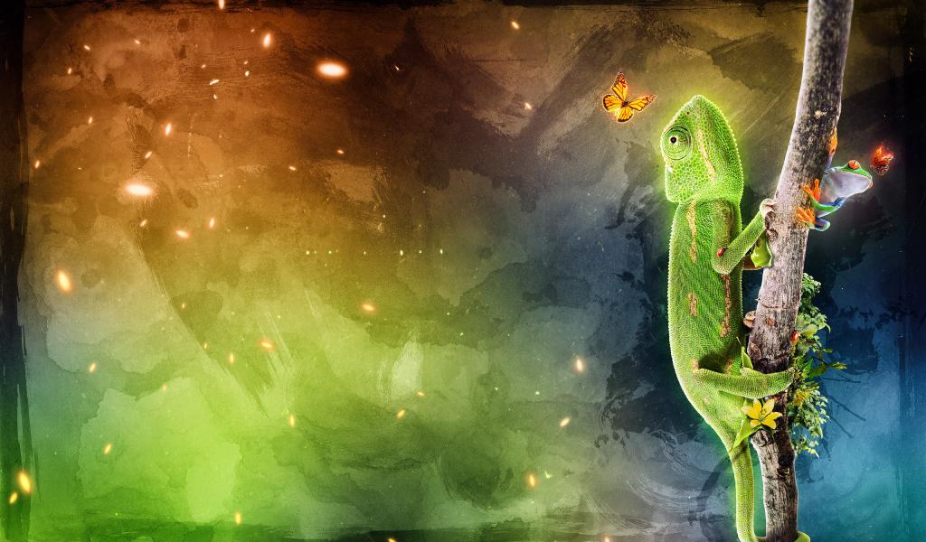 Wallpaper Chameleon on a branch