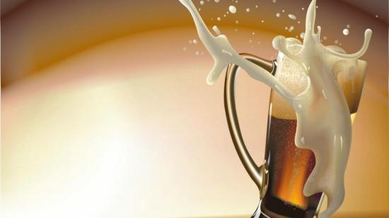 Wallpaper Glass of beer among the mountain caps from beer bottles