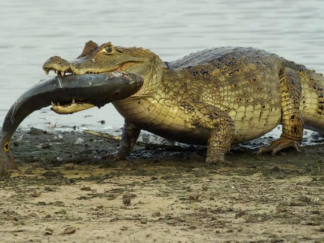 Wallpaper Crocodile fish carries in his teeth