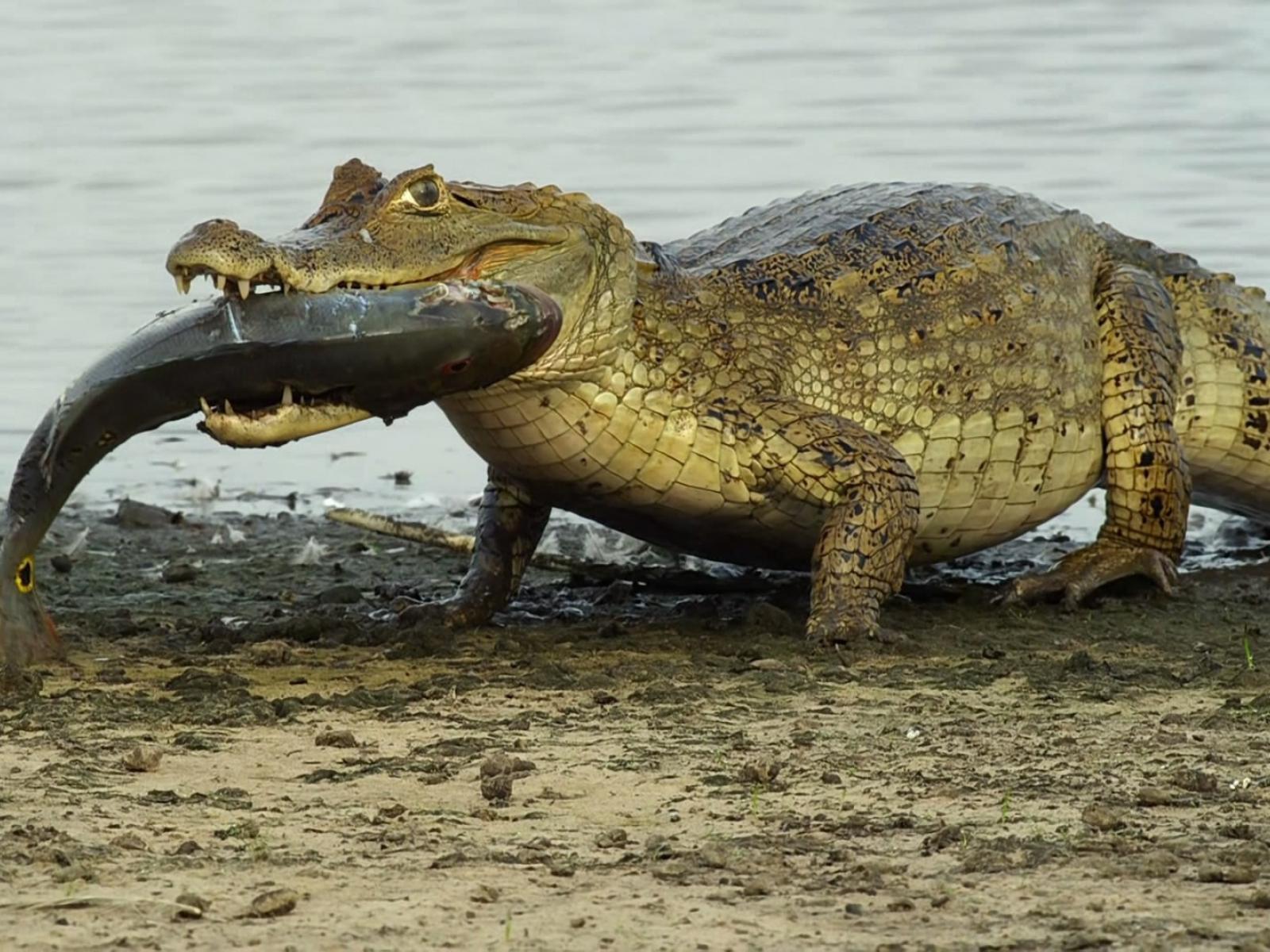 Wallpaper Crocodile fish carries in his teeth