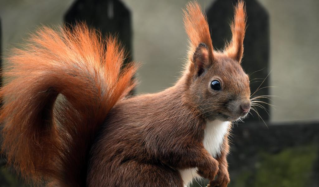 Wallpaper Squirrel with a fluffy tail on a wooden branch