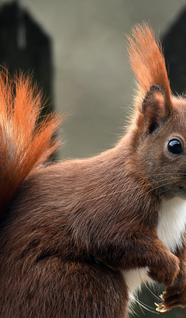 Wallpaper Squirrel with a fluffy tail on a wooden branch