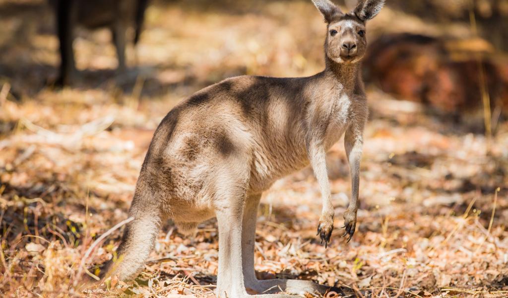 Wallpaper Australian kangaroo stands on dry grass
