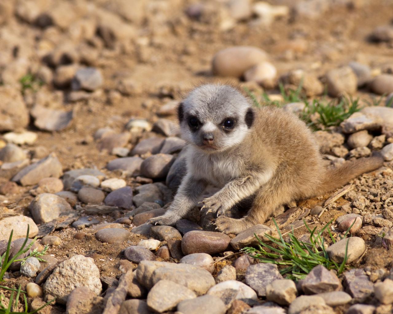 Wallpaper Little Surikat sits on small stones