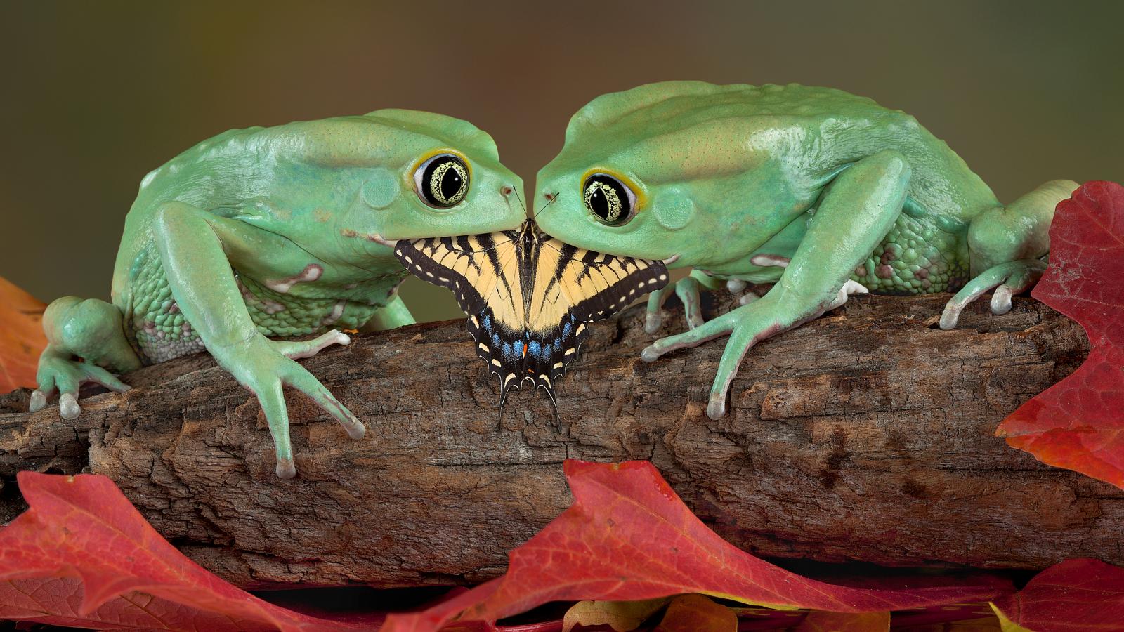 Wallpaper Green frog Red-eyed Frogs on a flower